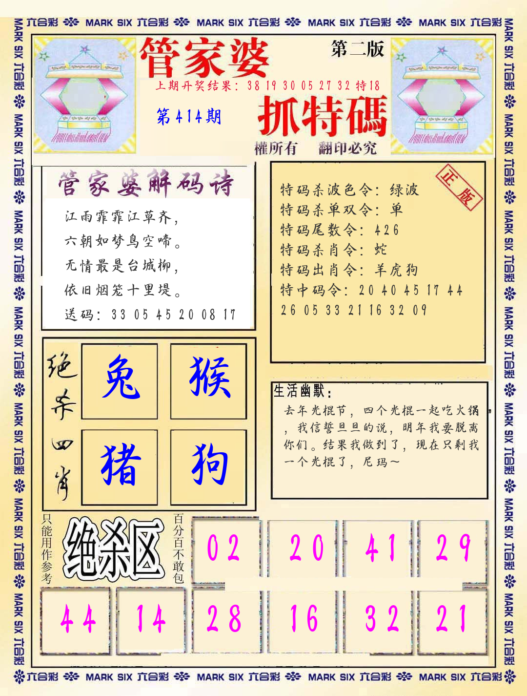 | 0410期:逼哥四尾八码 开32猪错 | |