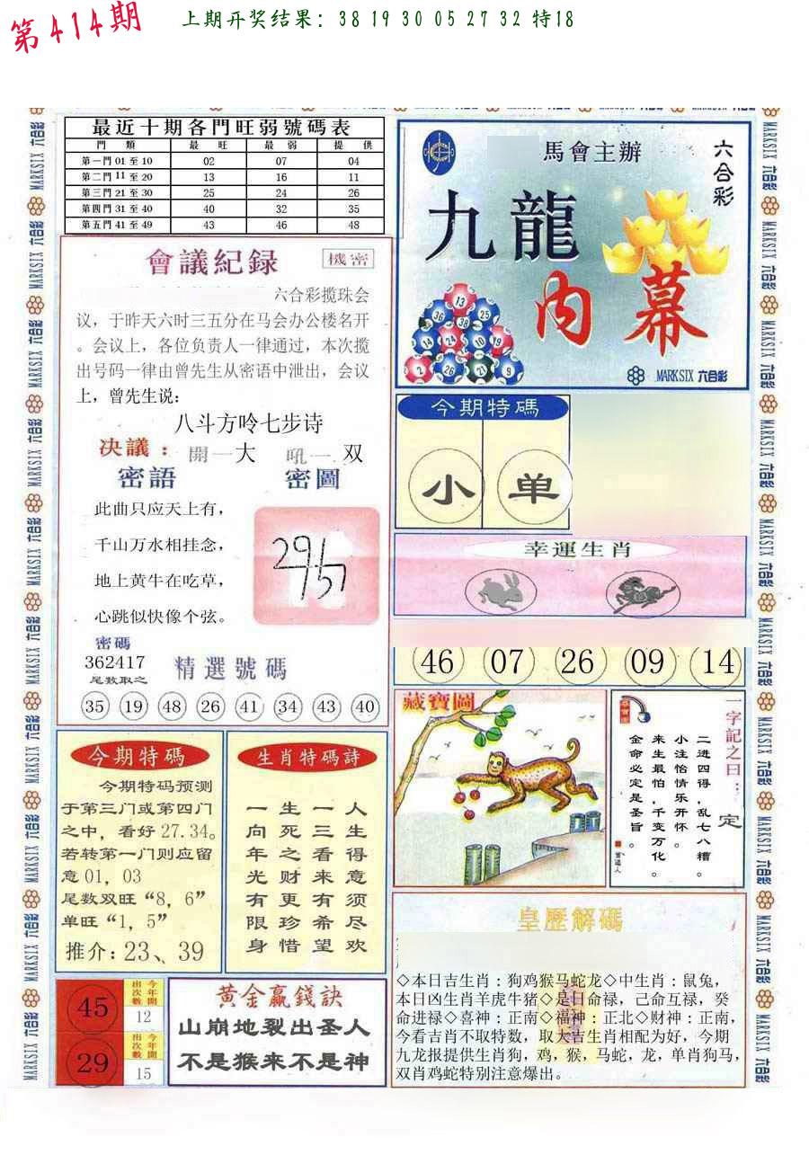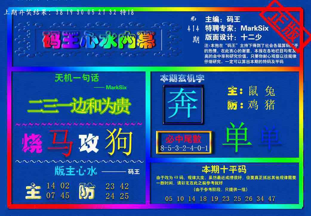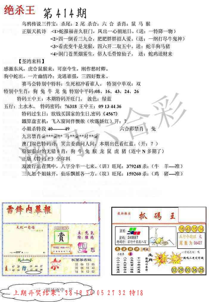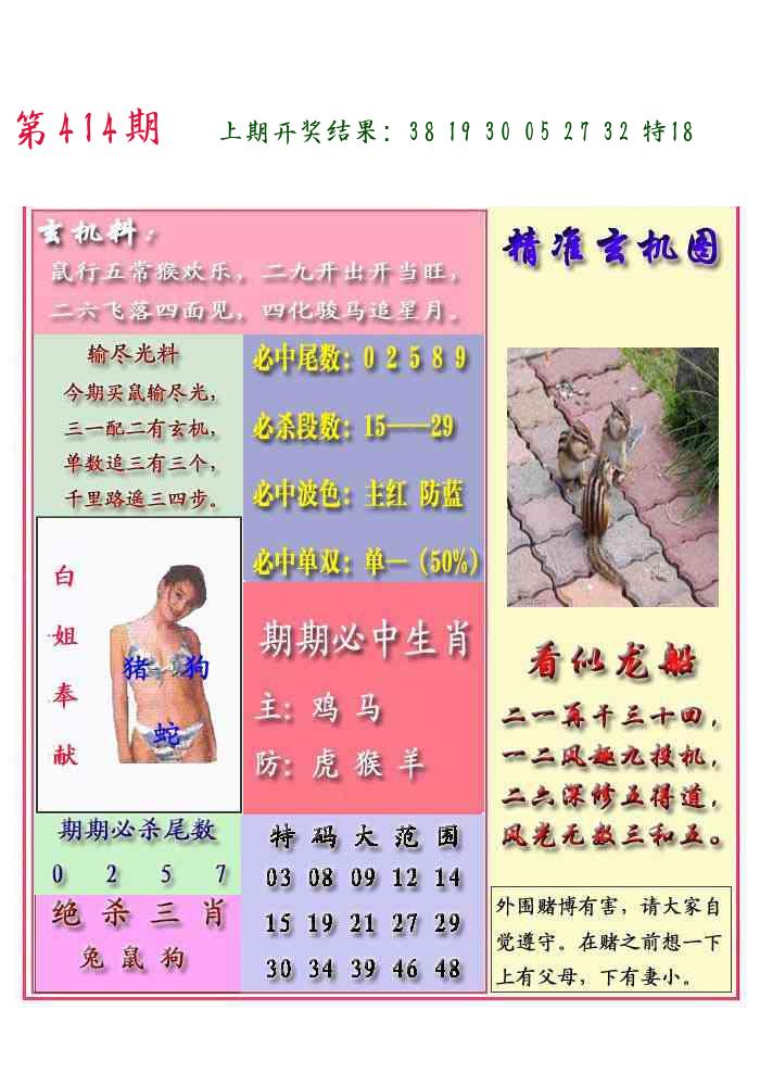 | 0411期:逼哥四尾八码 开31鼠对 | |