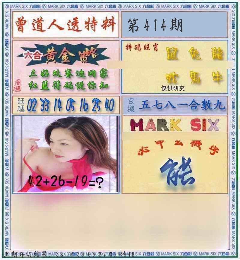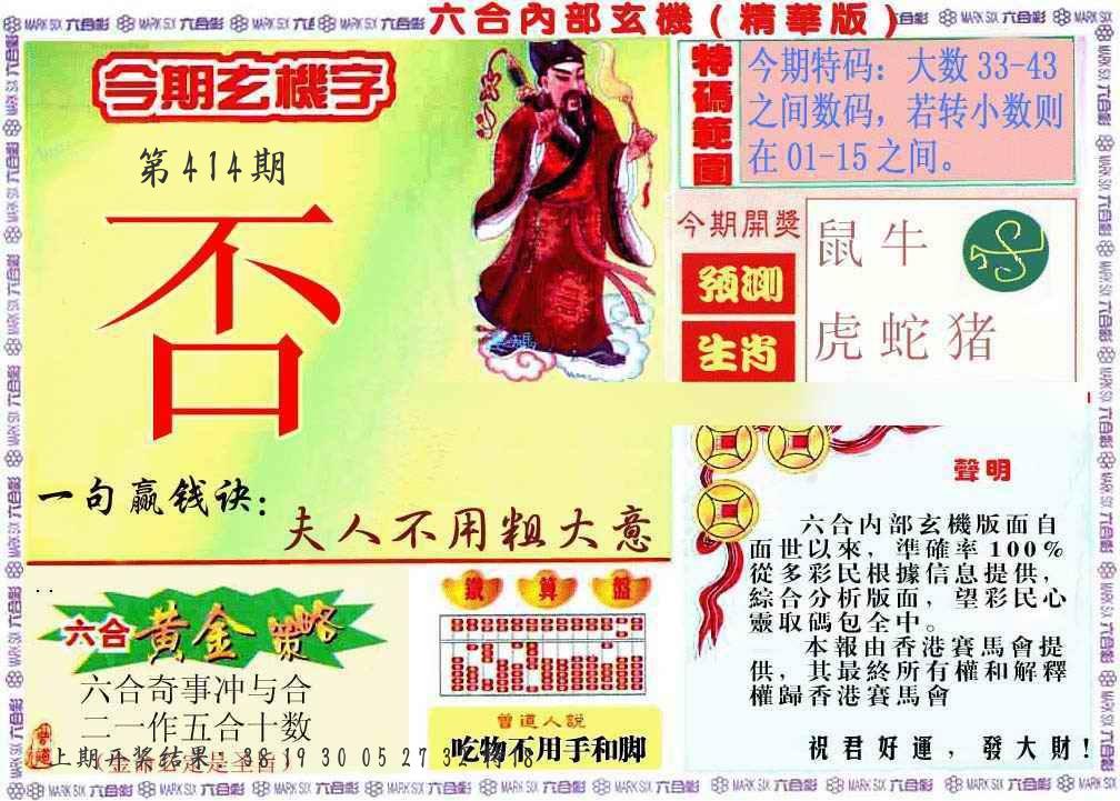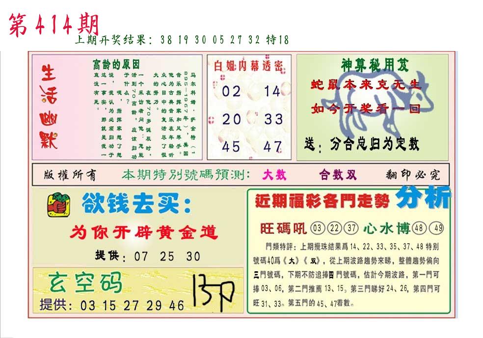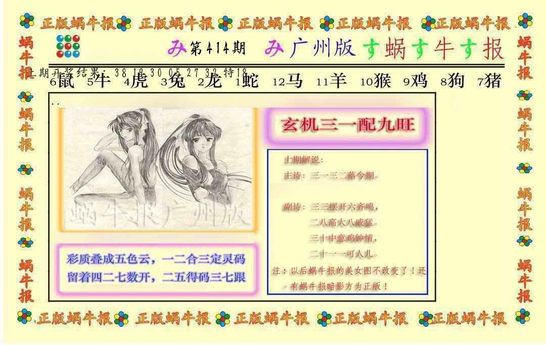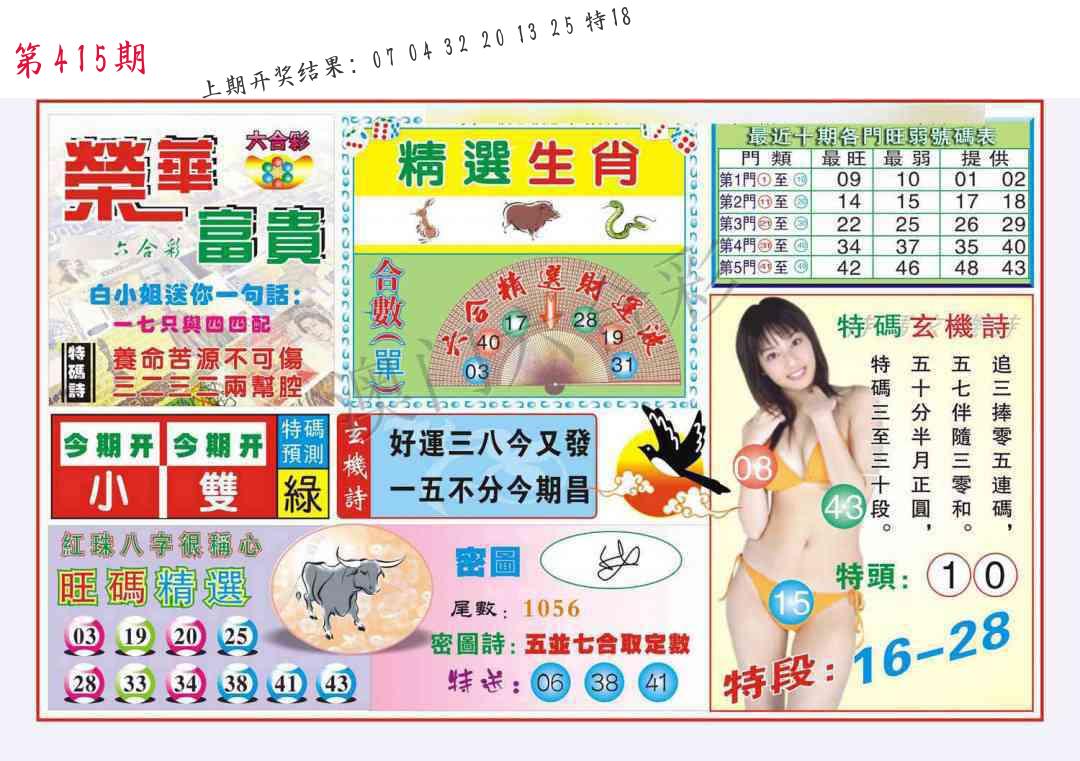 | 0411期:逼哥四尾八码 开31鼠对 | |